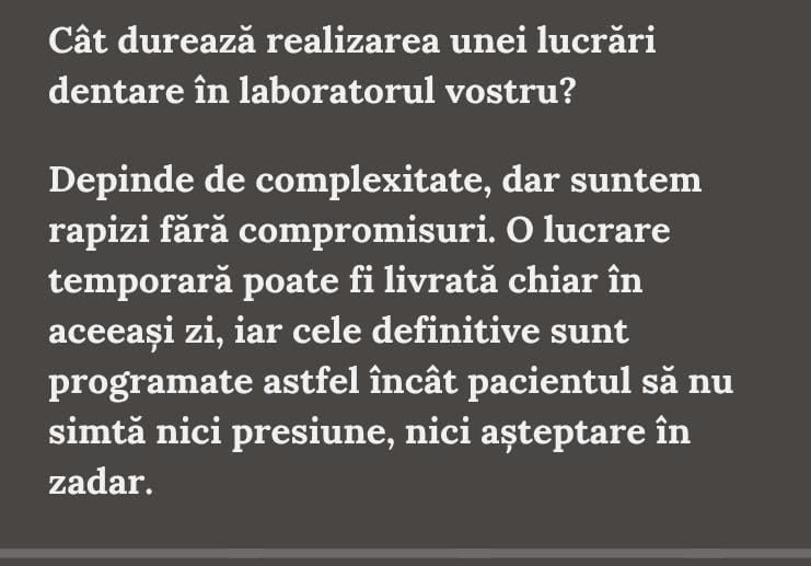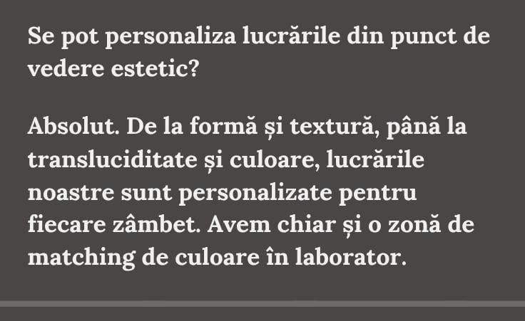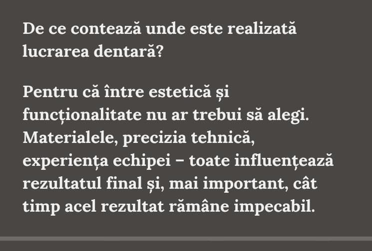 Fiecare lucrare este realizată cu pasiune, meticulozitate și grijă pentru pacient.